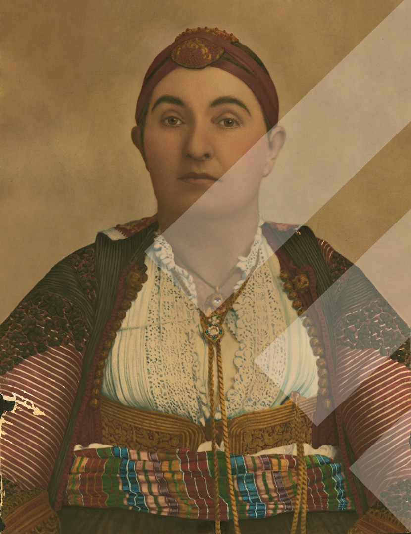 Pjetër Marubi, rreth 1880-1885, portreti i Shaqe Dedës, print në letër i ngjyrosur me dorë, 30 x 39 cm.