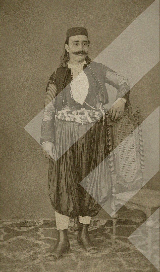 Pjetër Marubi, rreth 1875-1885, farmacisti Shan Hila, print në albuminë, 5.5 x 9.5 cm.