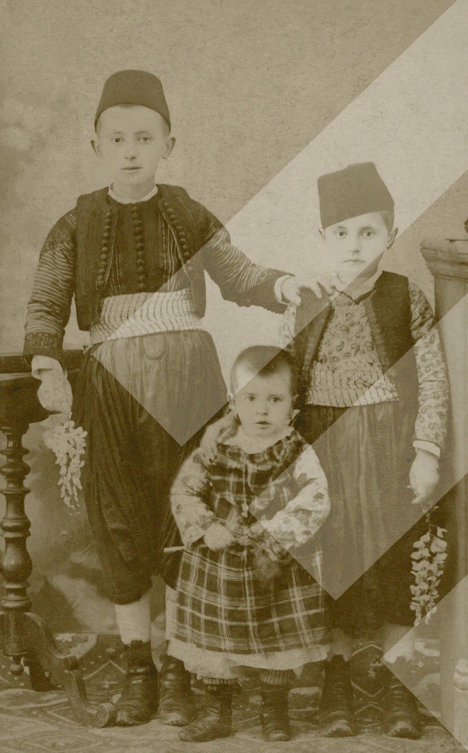 Pjetër Marubi, rreth 1875-1885, fëmijë në studio, print në albuminë, 10 x 14 cm.