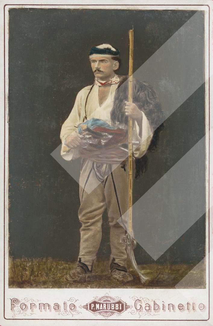 Pjetër Marubi, rreth 1880, malësor katolik nga Dukagjini, print në letër i ngjyrosur me dorë, 10 x 14 cm.