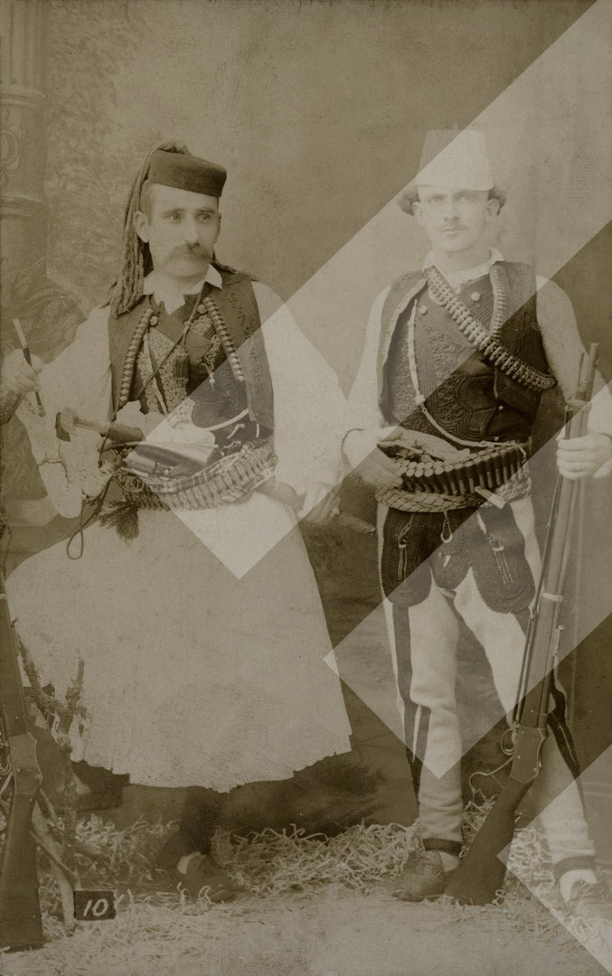 Kel Marubi, rreth 1900-1910, Burra të armatosur në pozë, print në letër, 9 x 14 cm.