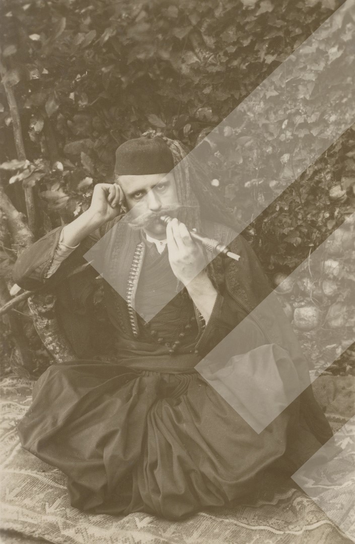 Kel Marubi, rreth 1900-1910, Katolik Shkodran me çibuk print në letër, 12 x 17 cm.