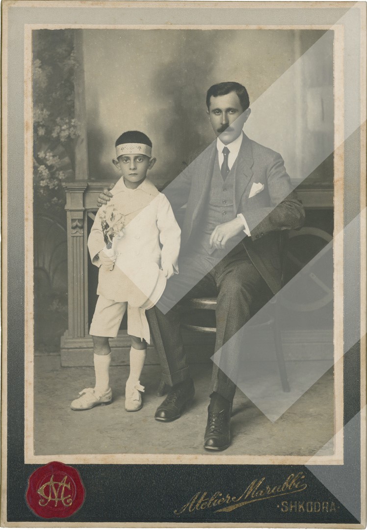 Kel Marubi, rreth 1915-1920, Pjerin Jubani me nipin Matish Prela, print në letër,, 10 x 14.5 cm.