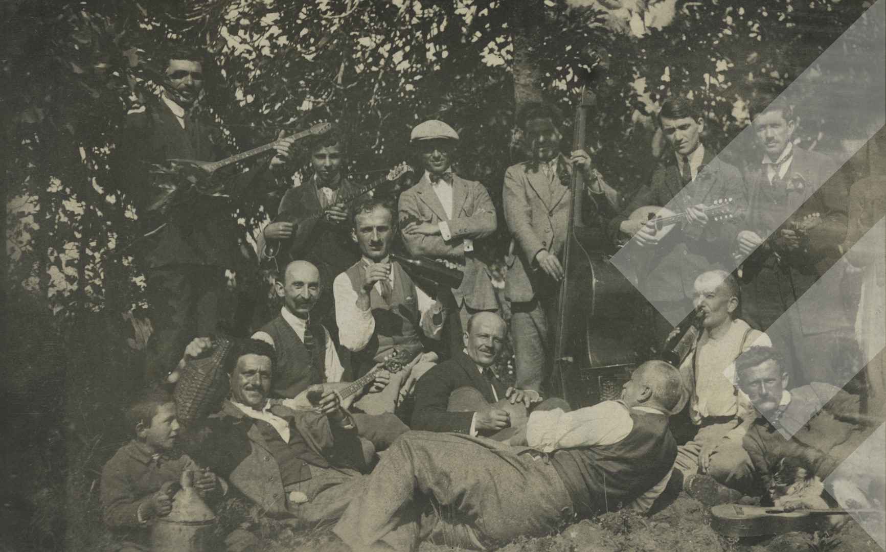 Kel Marubi, 1920 Festë në vreshtat e Kel Kodhelit. Bardhej, Shkodër print në letër, 9 x 14 cm.