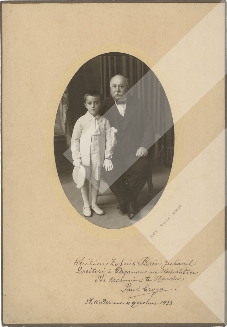 Kel Marubi, 1933, Pierin Jubani, drejtor i doganes se Kapshtices, ne krezmimin e Markut, Shkodër, print në letër, 19 x 20 cm.