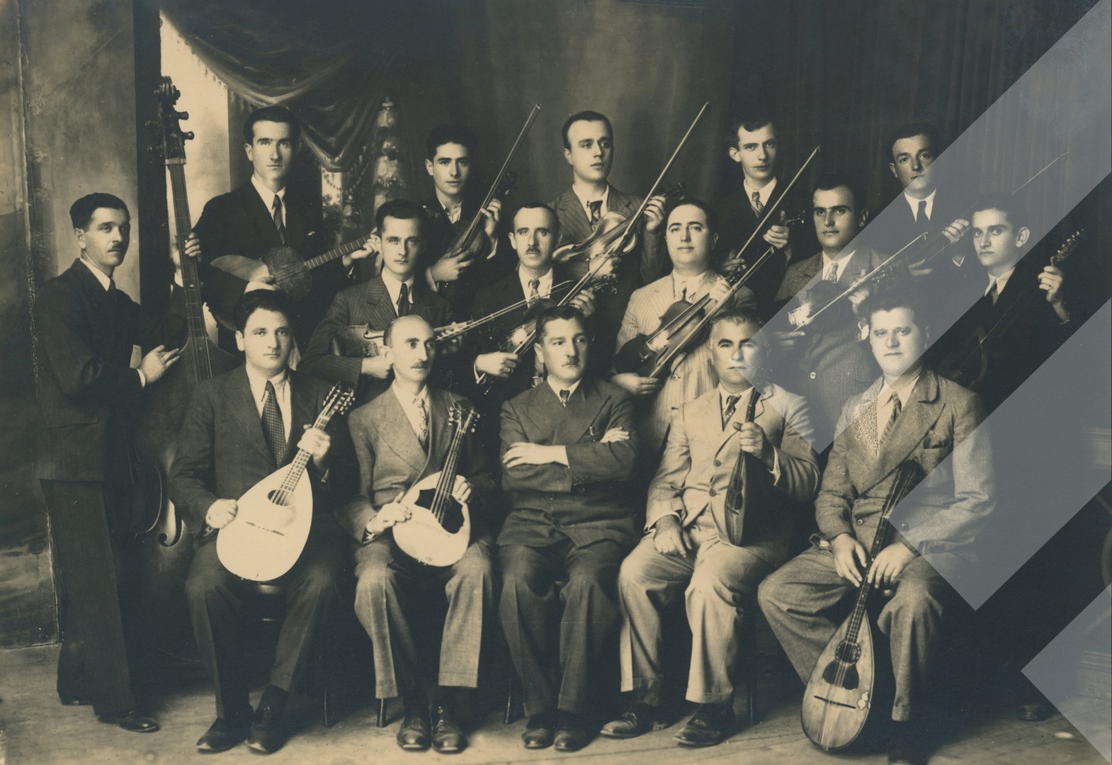 Kel Marubi, 1934 Dega muzikore e shoqërisë "Rozafat" print në letër, 13 x 18 cm.