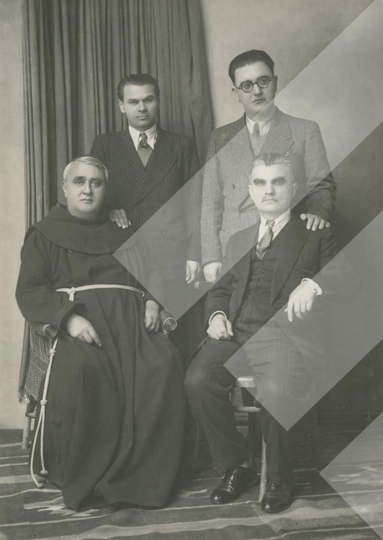 Kel Marubi, 1938 Katër shkrimtarët: Poradeci, Fishta, Koliqi dhe Asdreni print në letër, 13 x 18 cm.