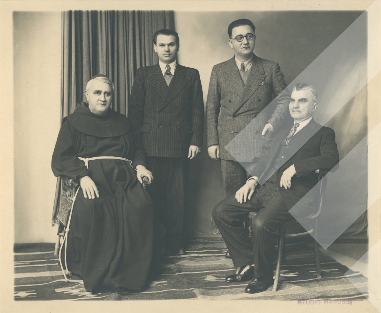 Kel Marubi, 1938 Katër shkrimtarët, ulur At Gjergj Fishta dhe Asdreni, në këmbë Lasgush Poradeci dhe Ernest Koliqi print në letër, 13 x 18 cm.
