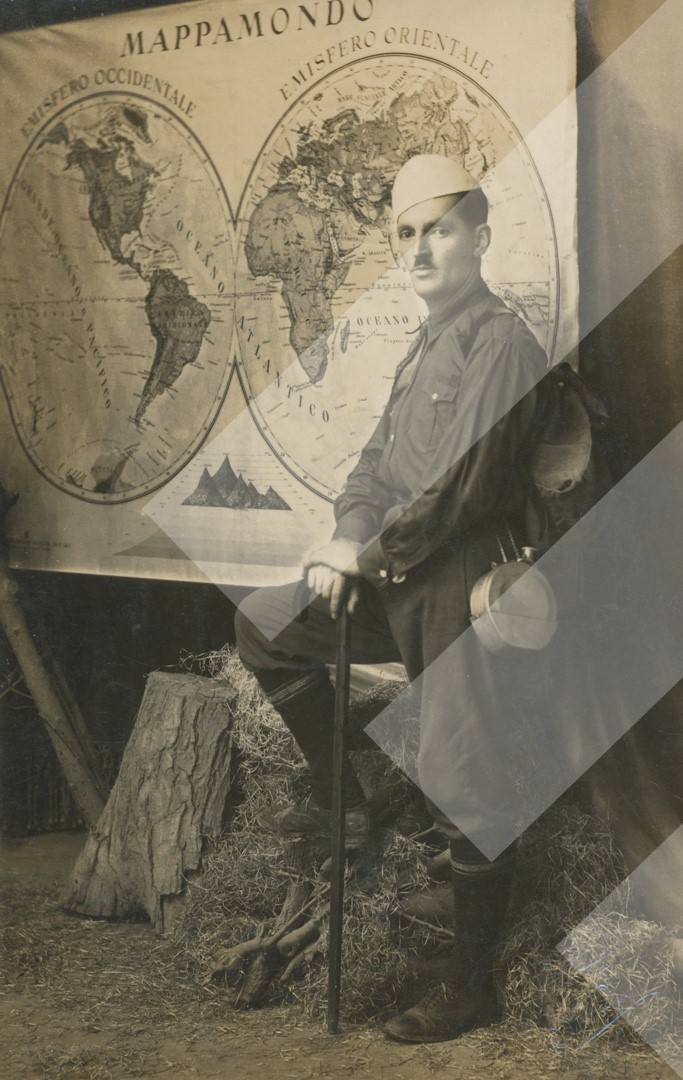 Kel Marubi, rreth 1930-1940 Gasper Shllaku në nisje të udhëtimit në këmbë qark botës print në letër, 9 x 14 cm.