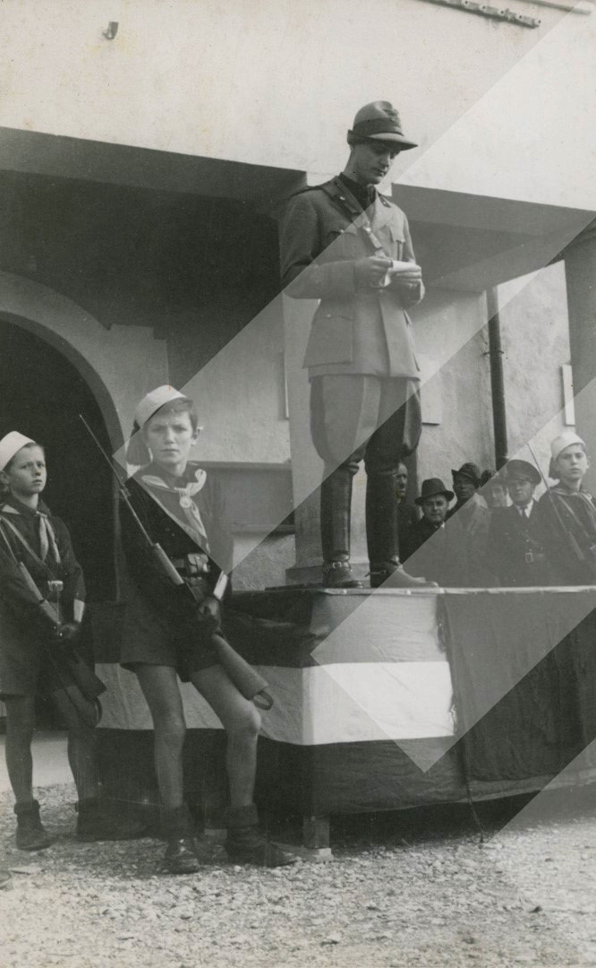 Studio Marubi, rreth 1939-1940 Manifestim i rinisë fashiste print në letër, 9 x 14 cm.