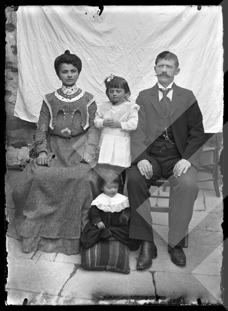 I panjohur rreth 1900-1910 Familje në pozë, Korçë pllakë xhami, 13 x 18 cm.