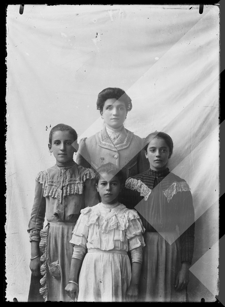 I panjohur rreth 1900-1910 Nëna dhe bijat, Korçë pllakë xhami, 13 x 18 cm.