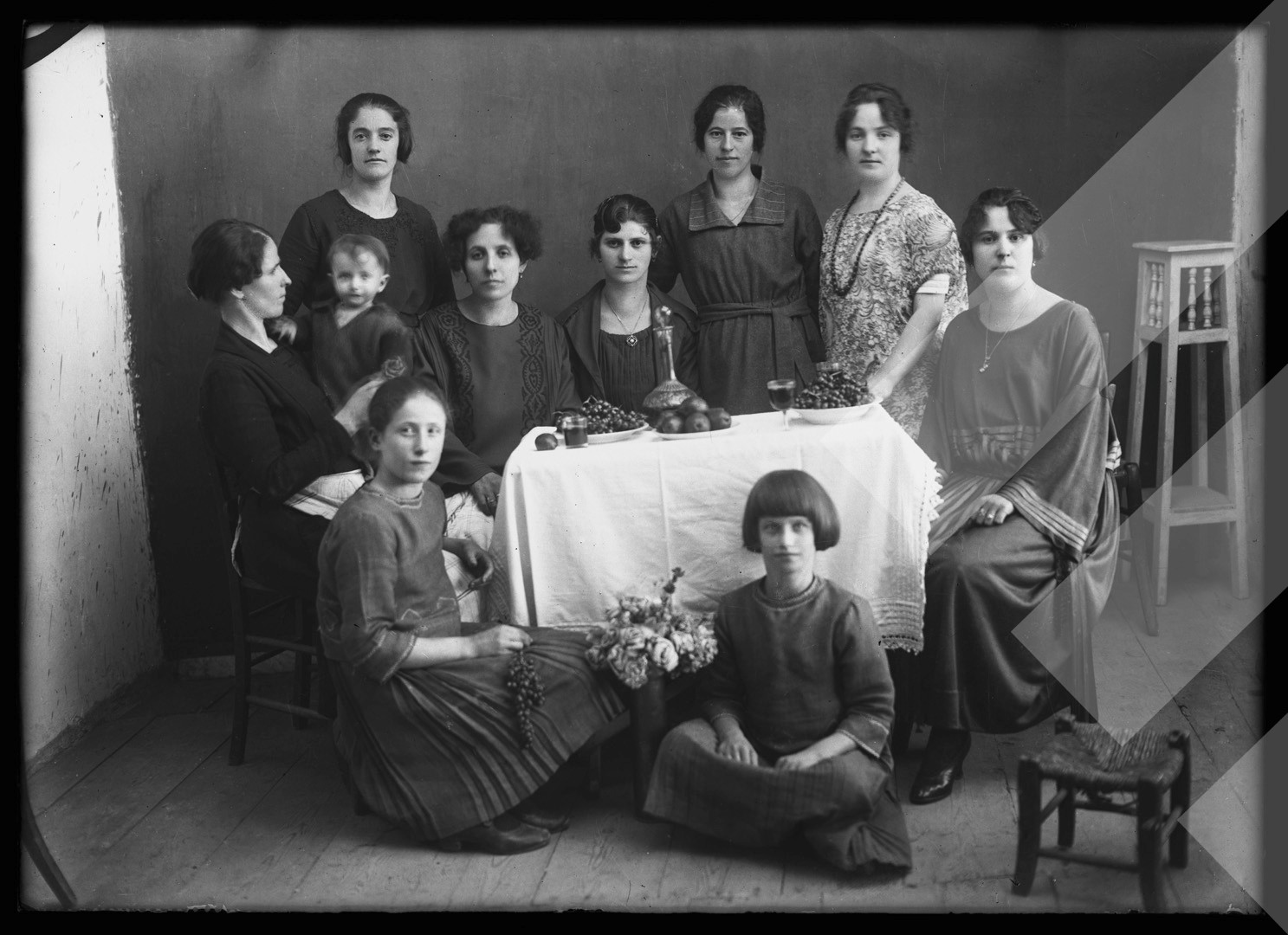 I panjohur rreth 1910-1915 Foto familjare, Korçë pllakë xhami, 13 x 18 cm.