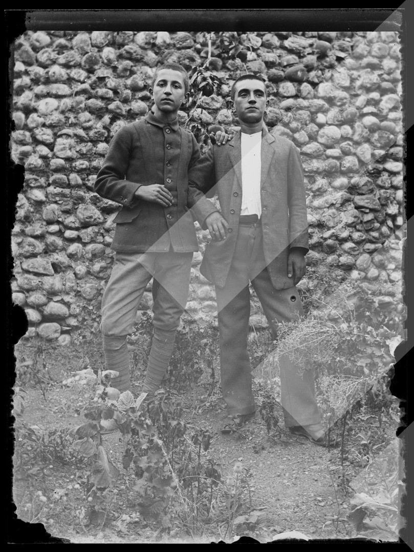 I panjohur rreth 1915-1917 Dy të rinj shkodranë pllakë xhami, 9 x 12 cm.
