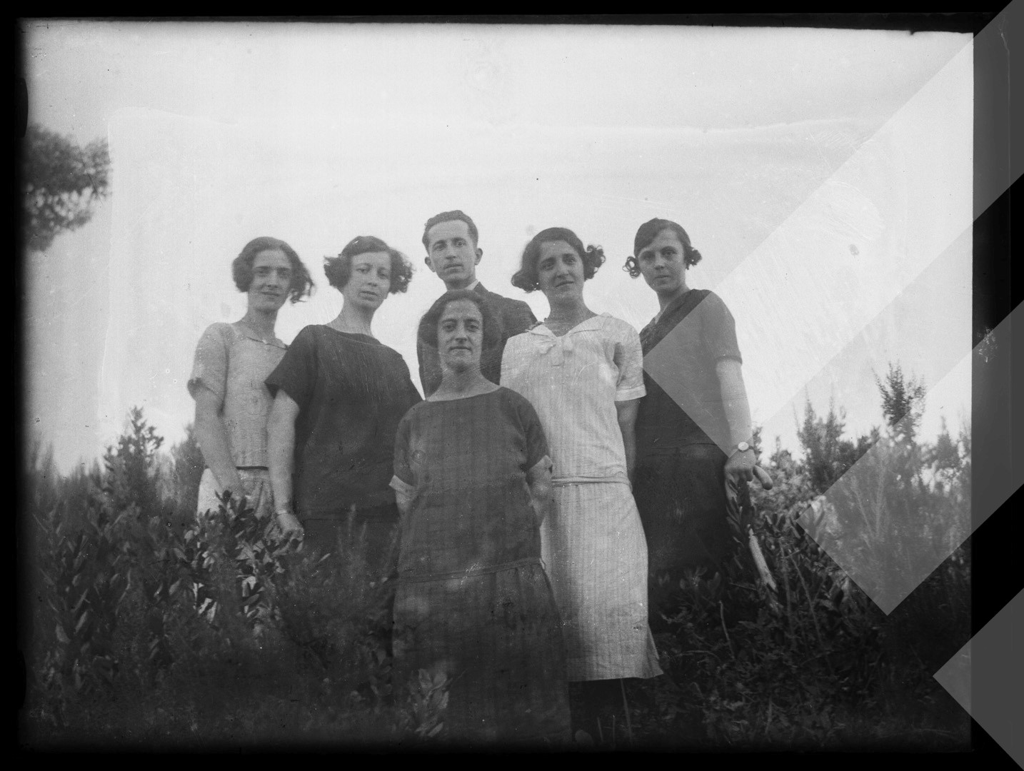 I panjohur rreth 1930-1935 Familje në Shkodër pllakë xhami, 9 x 12 cm.
