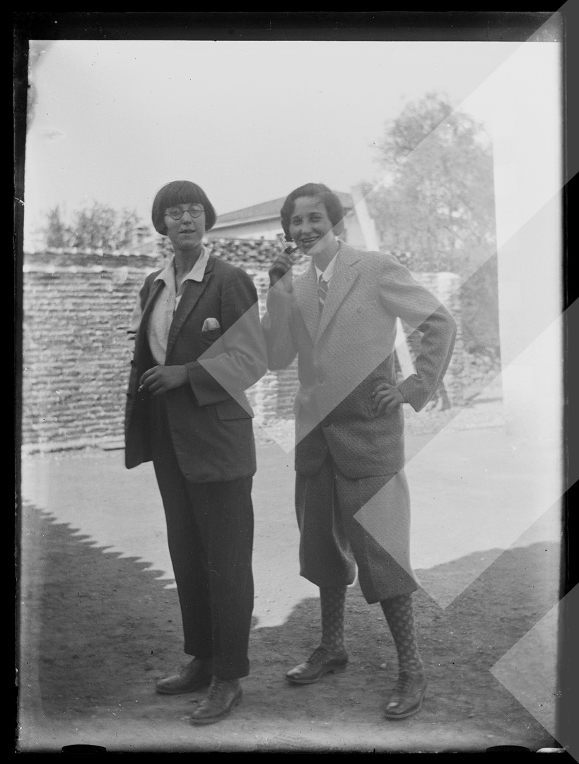 I panjohur rreth 1930 Dy të reja në pozë, Shkodër pllakë xhami, 9 x 12 cm.