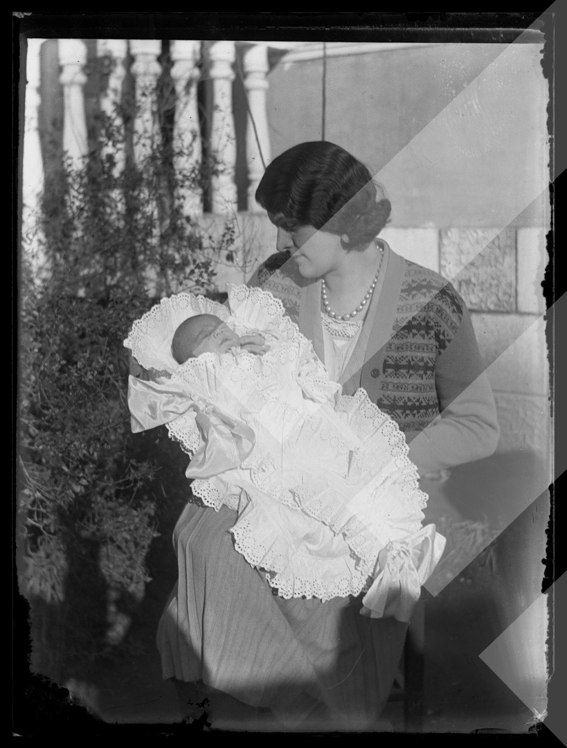 I panjohur rreth 1930-1935 Nënë me fëmijë pllakë xhami, 9 x 12 cm.
