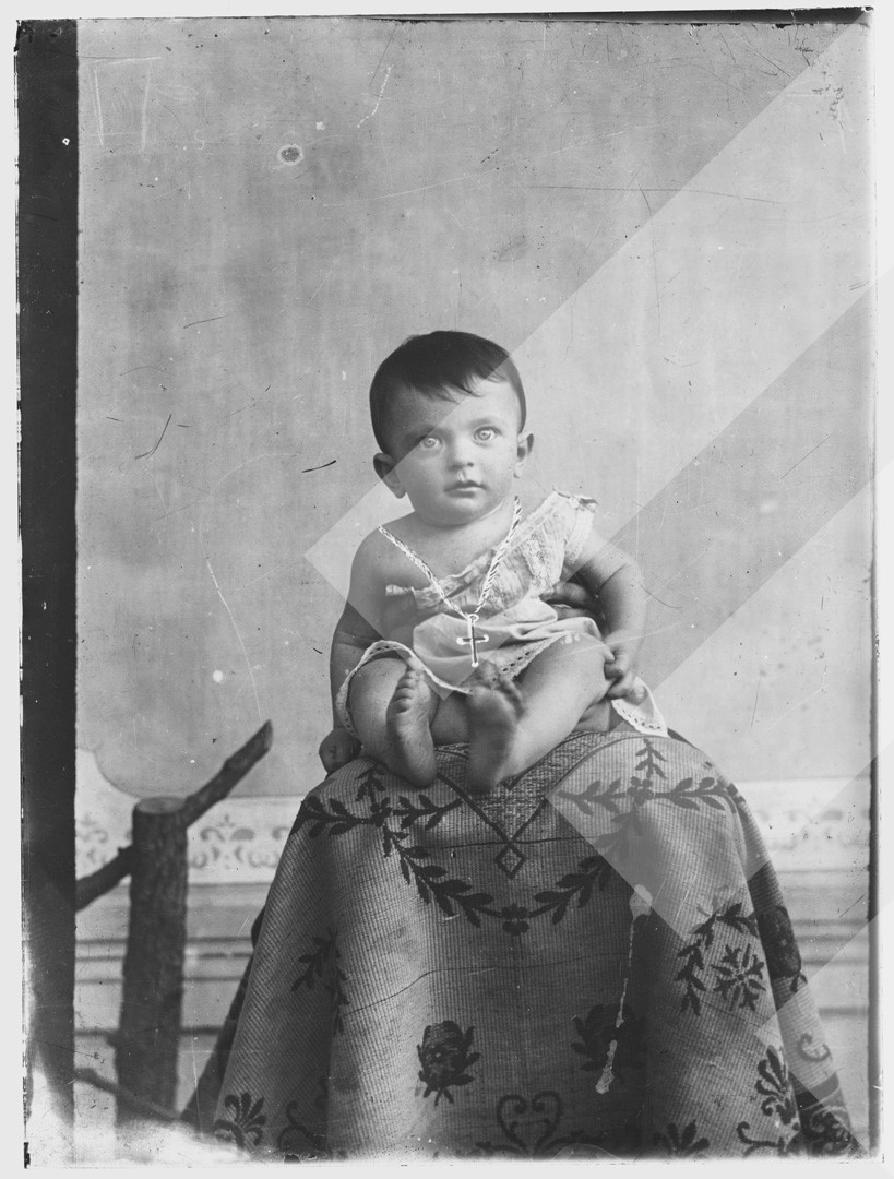 I panjohur rreth 1900-1910 Foshnje në pozë, Korçë print në letër, 9 x 13 cm.
