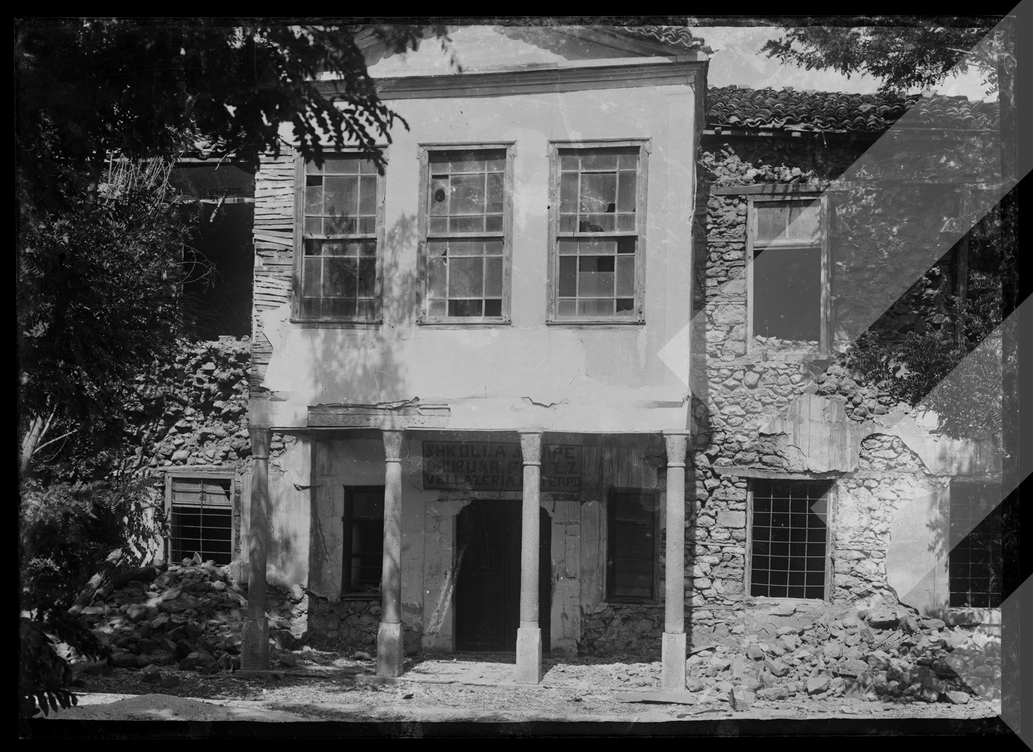 I panjohur rreth 1920-1921 Ndërtesa e braktisur e shkollës shqipe në Korçë print në letër, 13 x 18 cm.