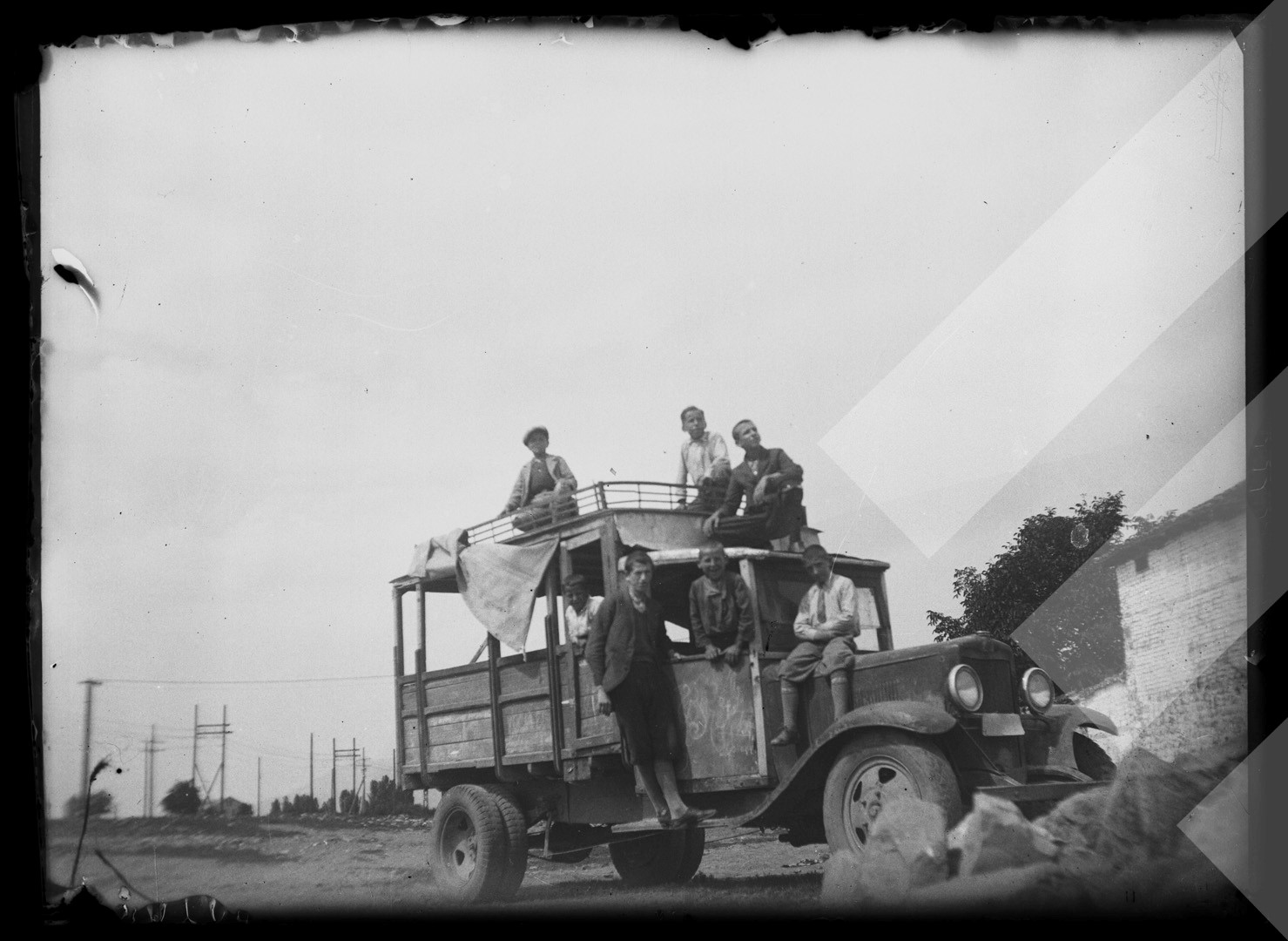 I panjohur rreth 1930-1935 Në pozë mbi kamion, Korçë pllakë xhami, 9 x 12 cm.