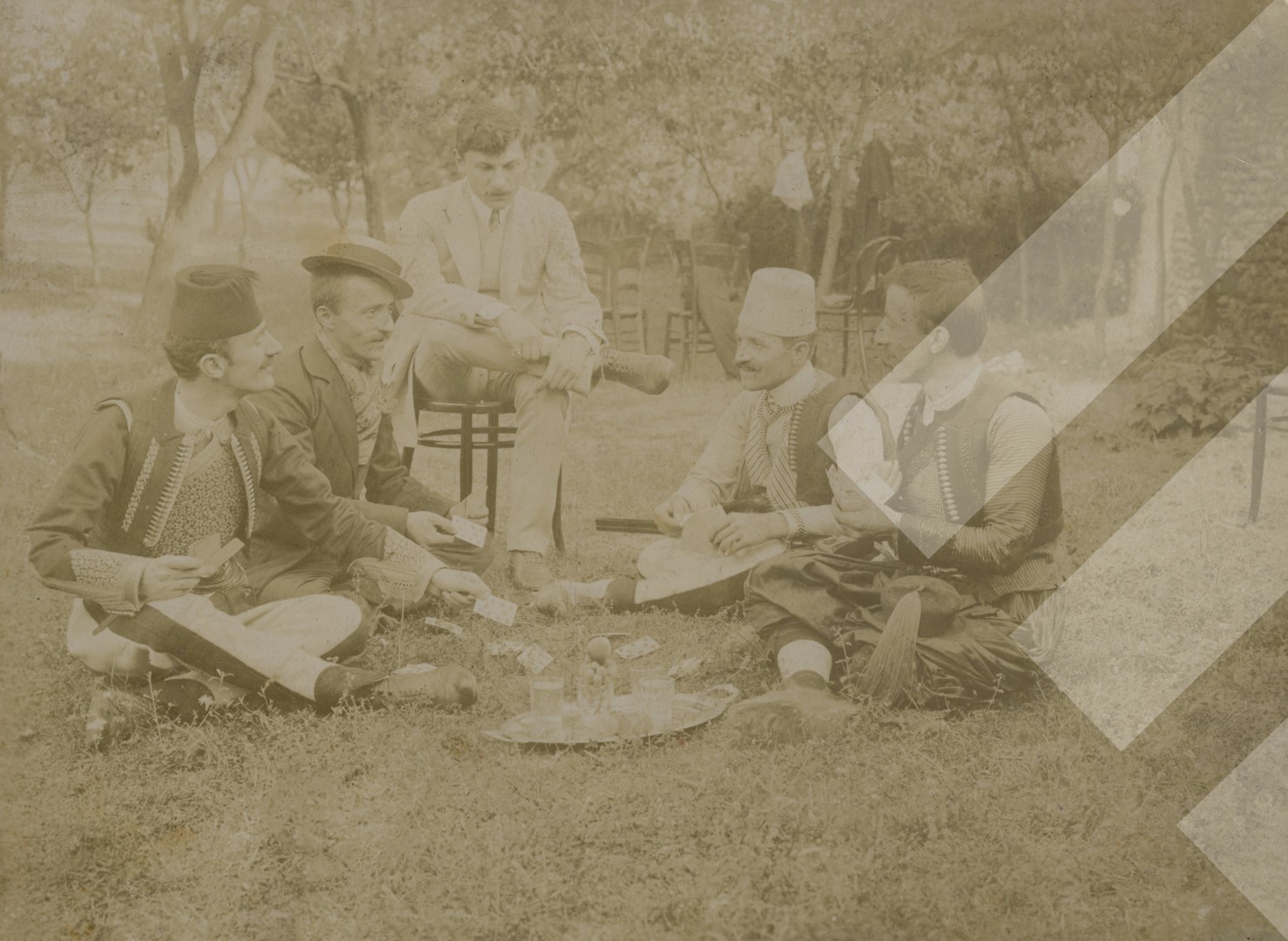 I panjohur rreth 1910-1911 Grup miqsh duke luajtur me letra print në letër, 6 x 12 cm.