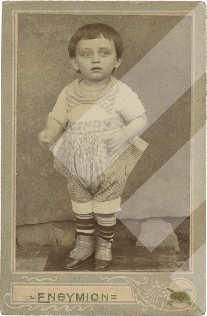 I panjohur, rreth 1900-1910 Fëmijë në pozë print në letër, 7 x 10 cm.