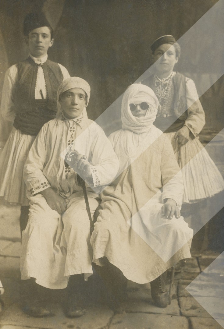 I panjohur rreth 1925-1930 Karnavale në Korçë print në letër, 9 x 14 cm.