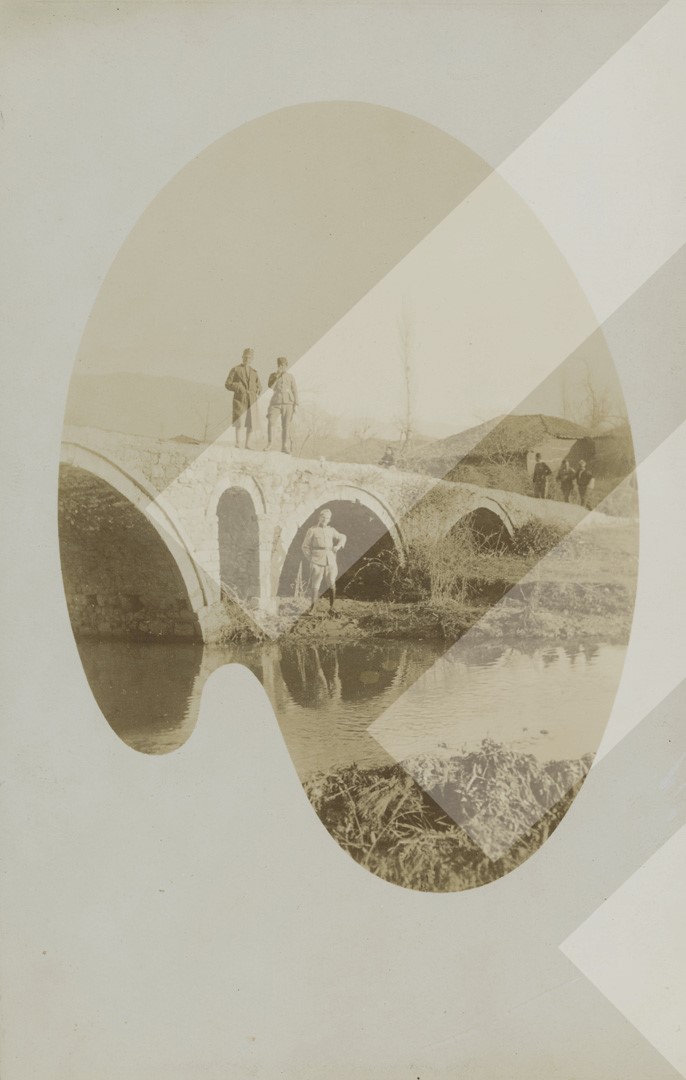 I panjohur 1920 Ushtarakë mbi urën e Terzive, Tiranë print në letër, 9 x 14 cm.