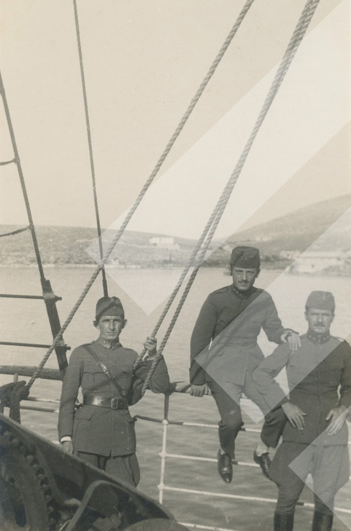 I panjohur, rreth 1930 Ushtarakë shqiptarë në lundrim print në letër, 9 x 14 cm.