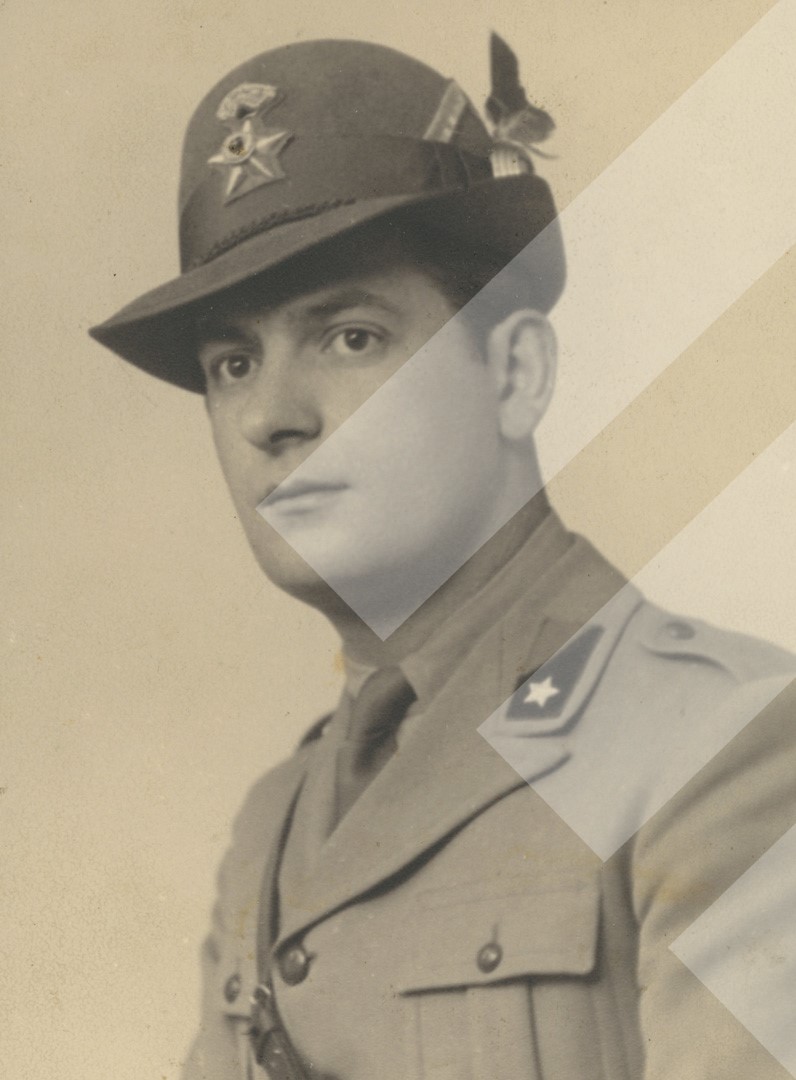 I panjohur 1936 Foti Xhitoni me uniformën e nëntogerit alpin të ushtrisë italiane print në letër, 9 x 14 cm.