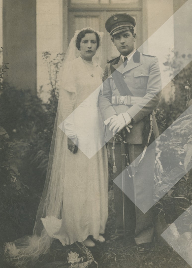 I panjohur 1937 Të porsamartuarit, nëntoger Foti Xhitoni dhe Andromaqi print në letër, 16 x 22 cm.