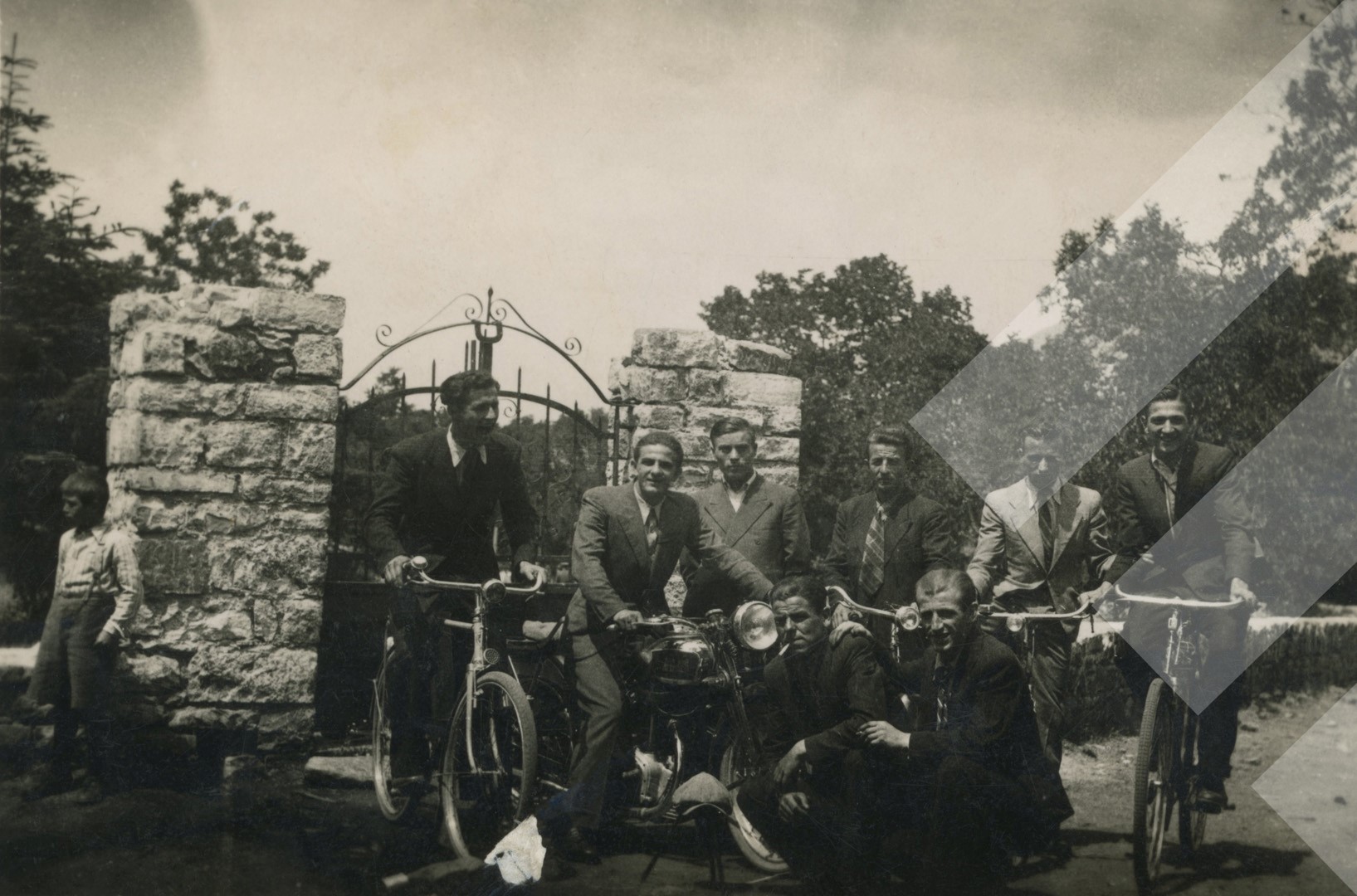 I panjohur, rreth 1937-1938, Grup të rinjsh me biçikleta, Korçë print në letër,, 6 x 9 cm,.