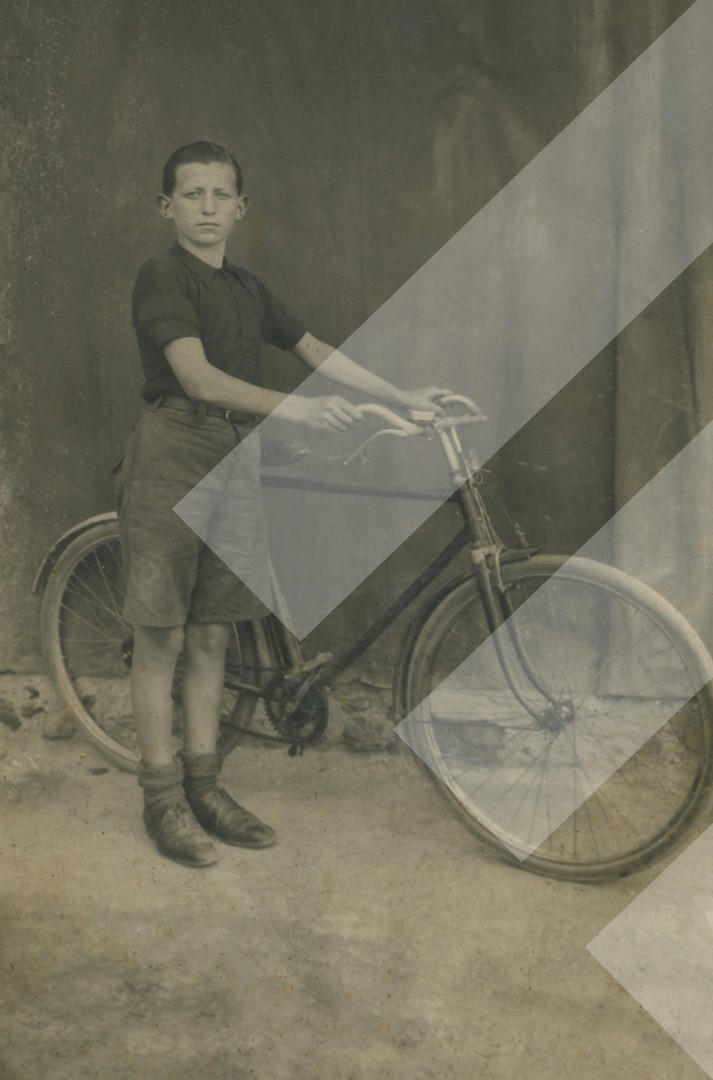 I panjohur, rreth 1935-1940, Djalosh me biçikletë, Korçë, print në letër,, 9 x 13 cm,.