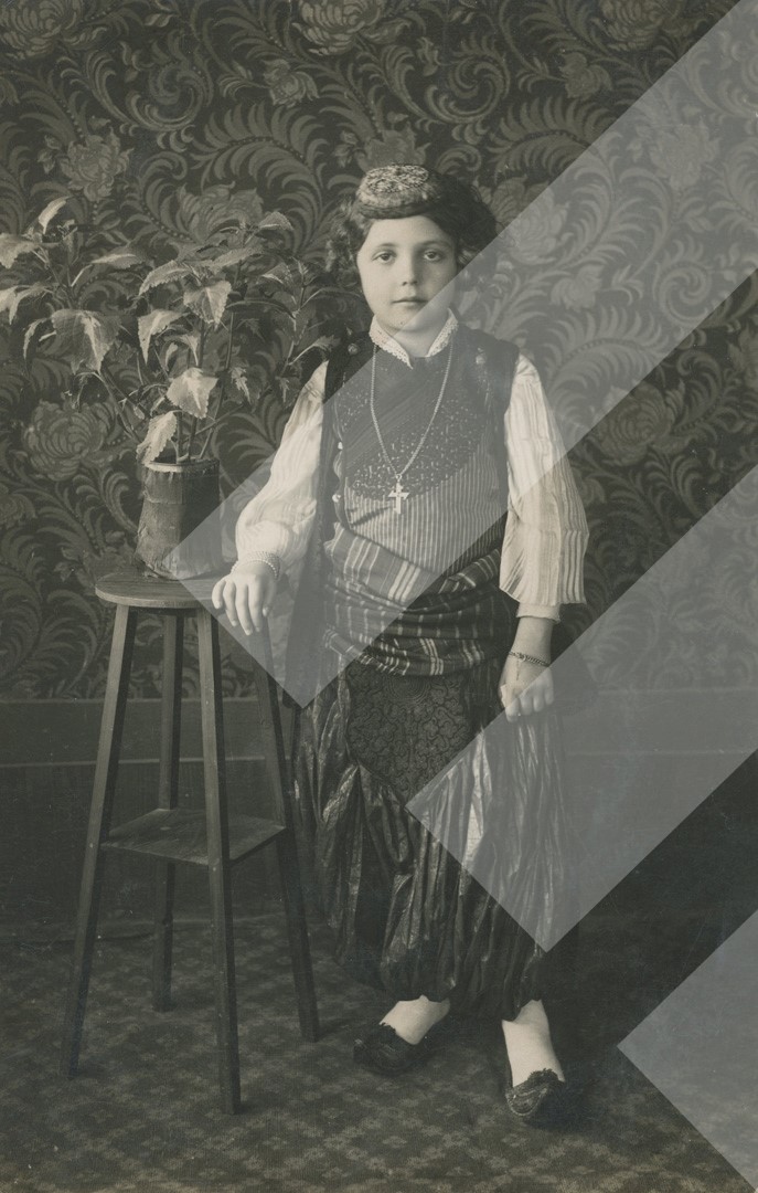 I panjohur, rreth 1930-1935, Vajzë në pozë print në letër,, 9 x 14 cm,.