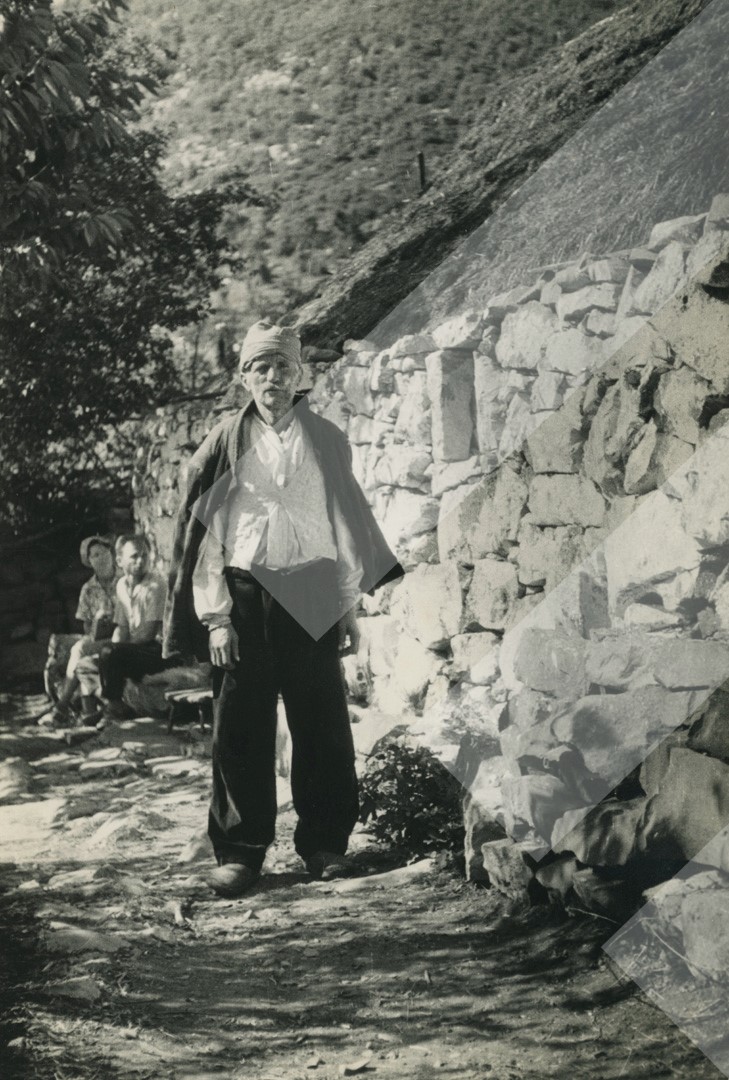 I panjohur, rreth 1961 Malësor përpara shëpisë së tij në Hot të Malësisë së Madhe print në letër, 13 x 18 cm.