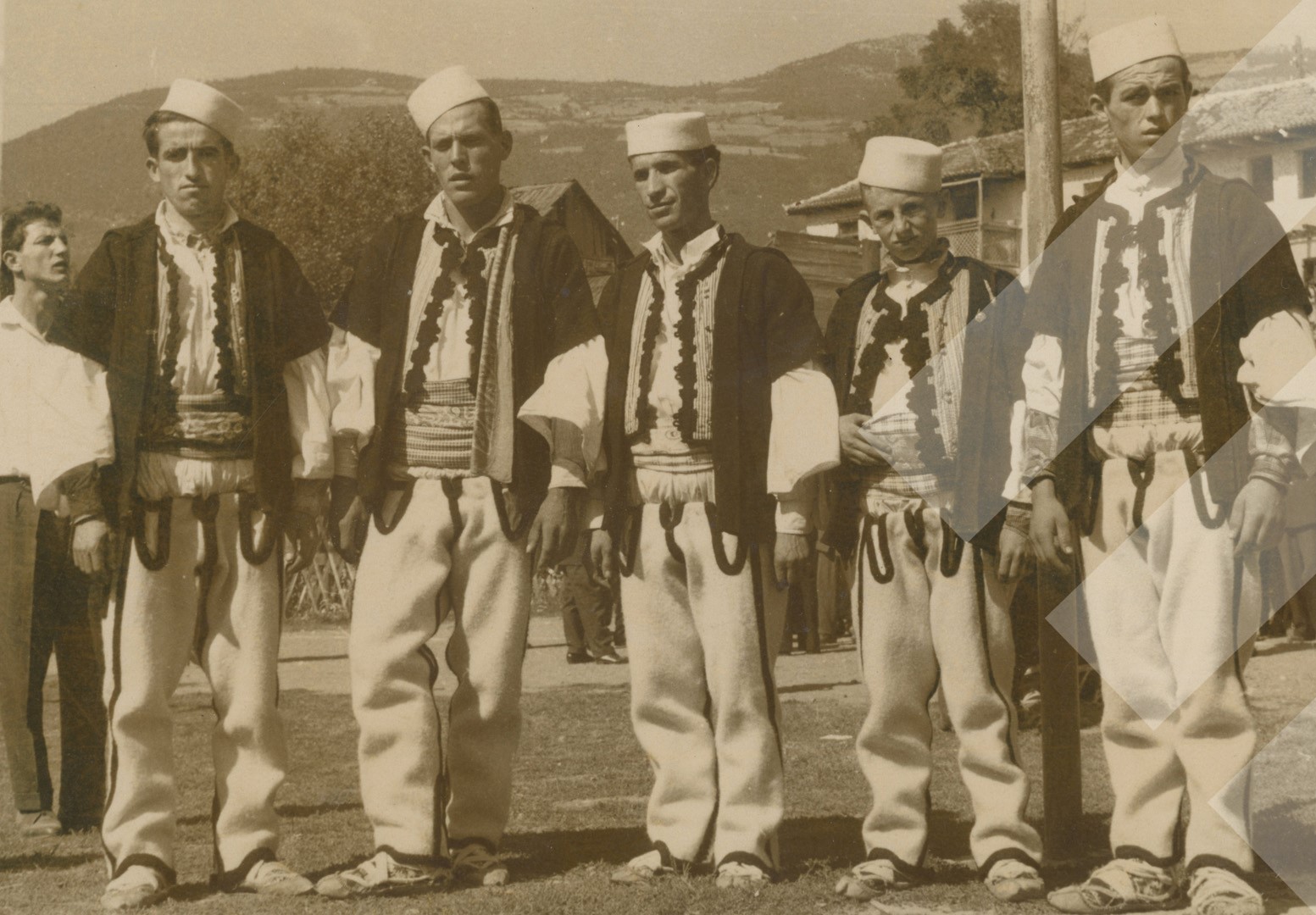 I panjohur, rreth 1950, Kuksianë me veshje tradicionale, print në letër, 9 x 14 cm.