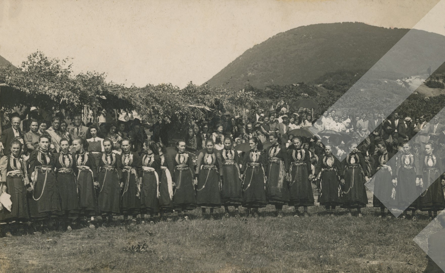 I panjohur 1940 Festa e Shën Mërisë, Dardhë print në letër, 9 x 14 cm.