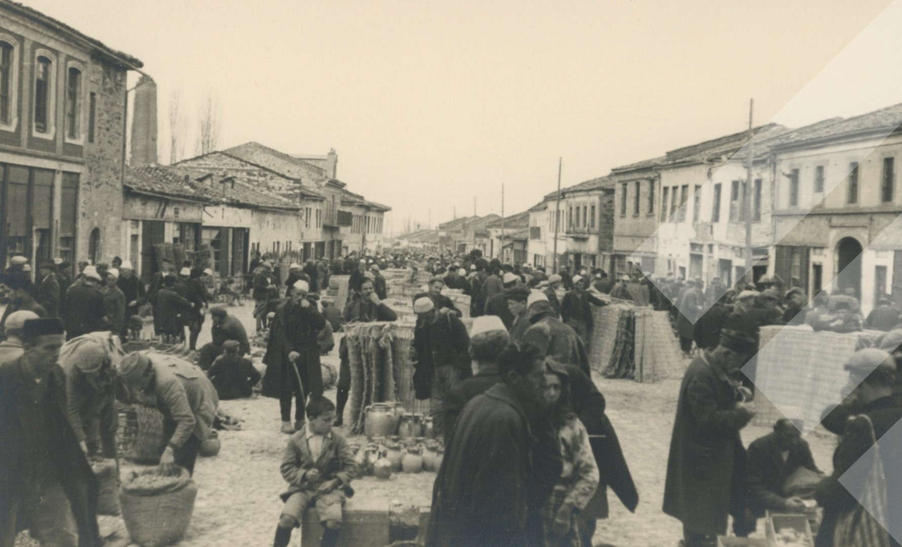 I panjohur, rreth 1940-1942 Në pazarin e Korçës print në letër, 9 x 14 cm.