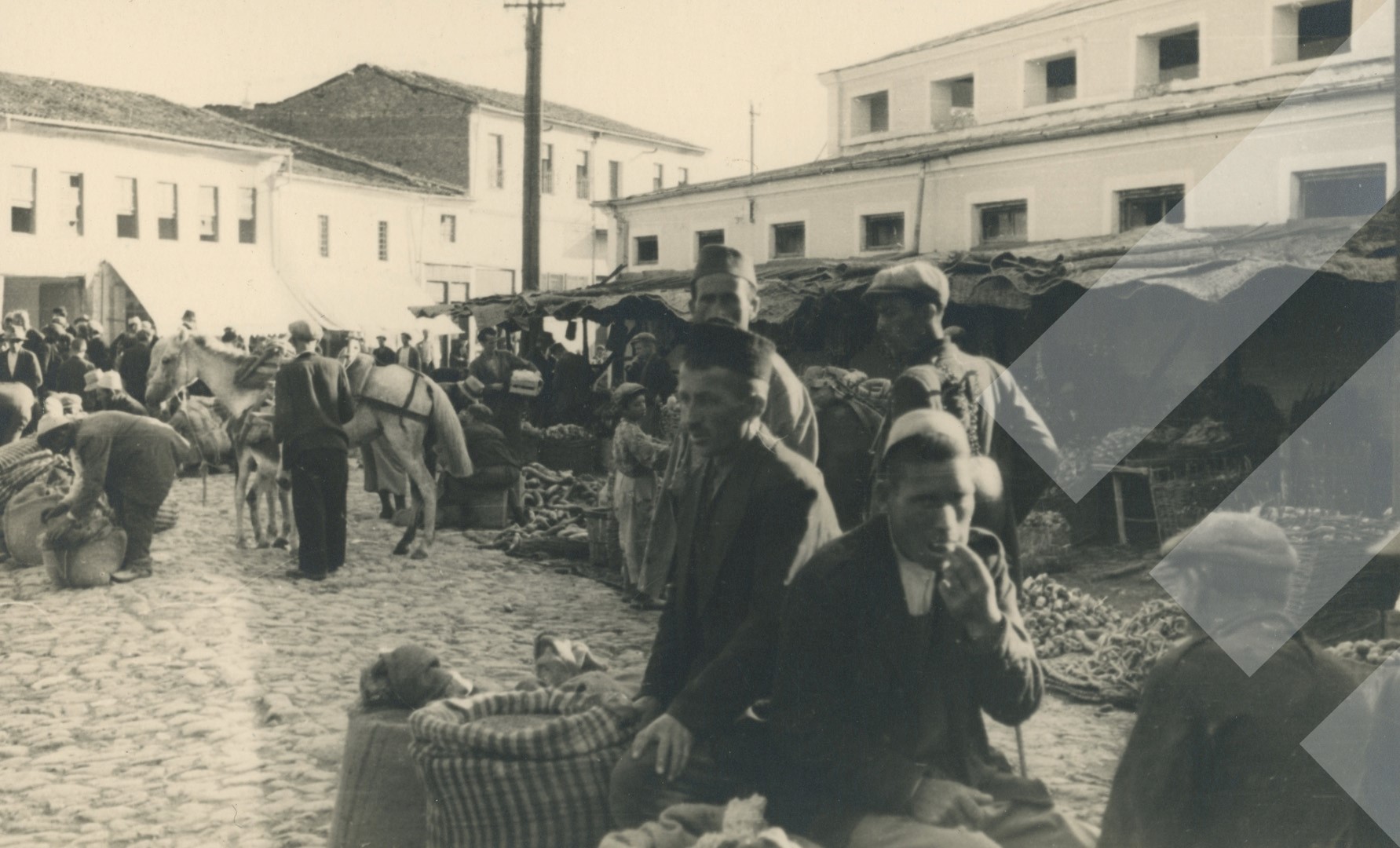I panjohur, rreth 1940-1942 Në pazarin e Korçës print në letër, 9 x 14 cm.