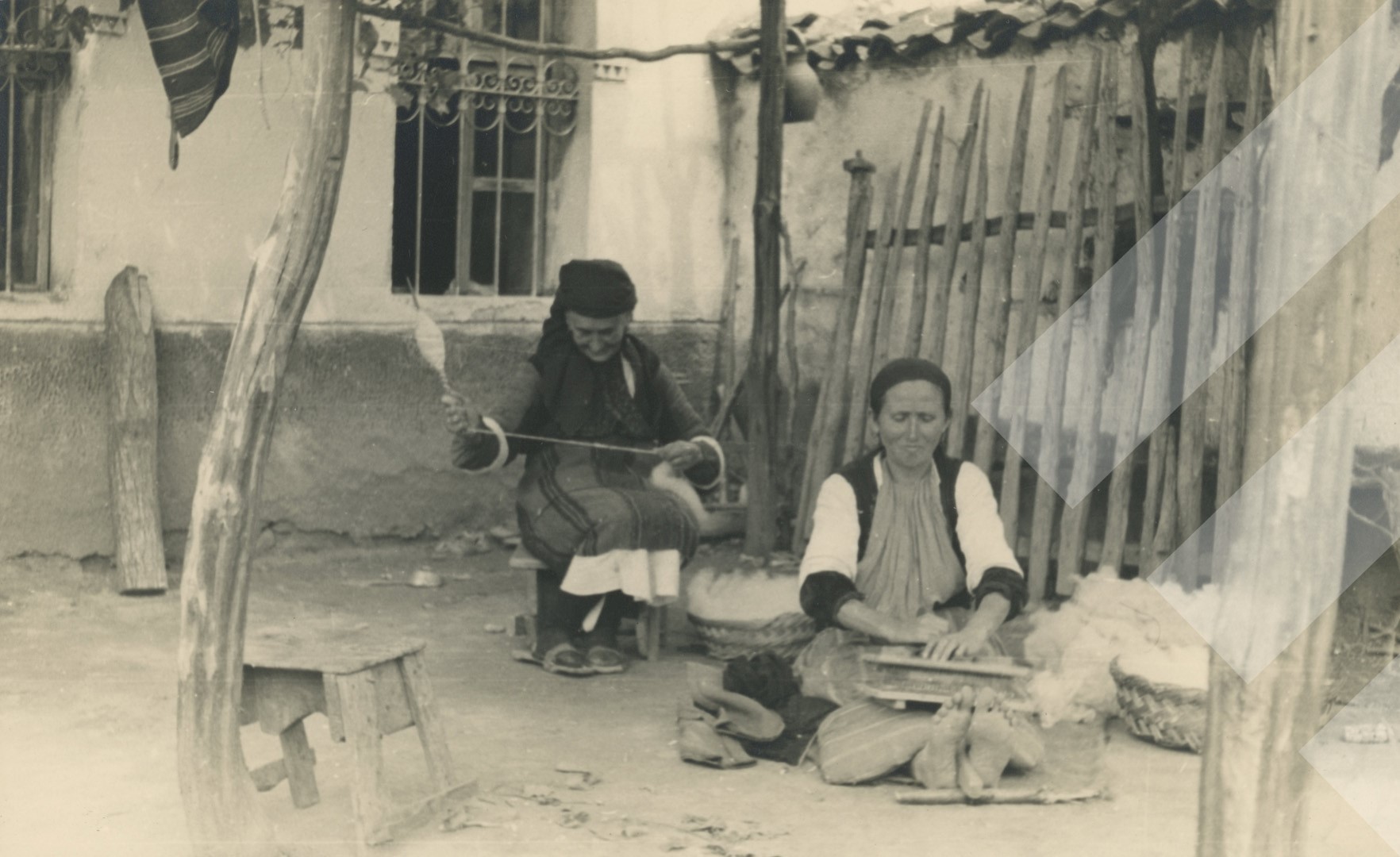 I panjohur, rreth 1940-1942 Duke punuar leshin, Korçë print në letër, 9 x 14 cm.