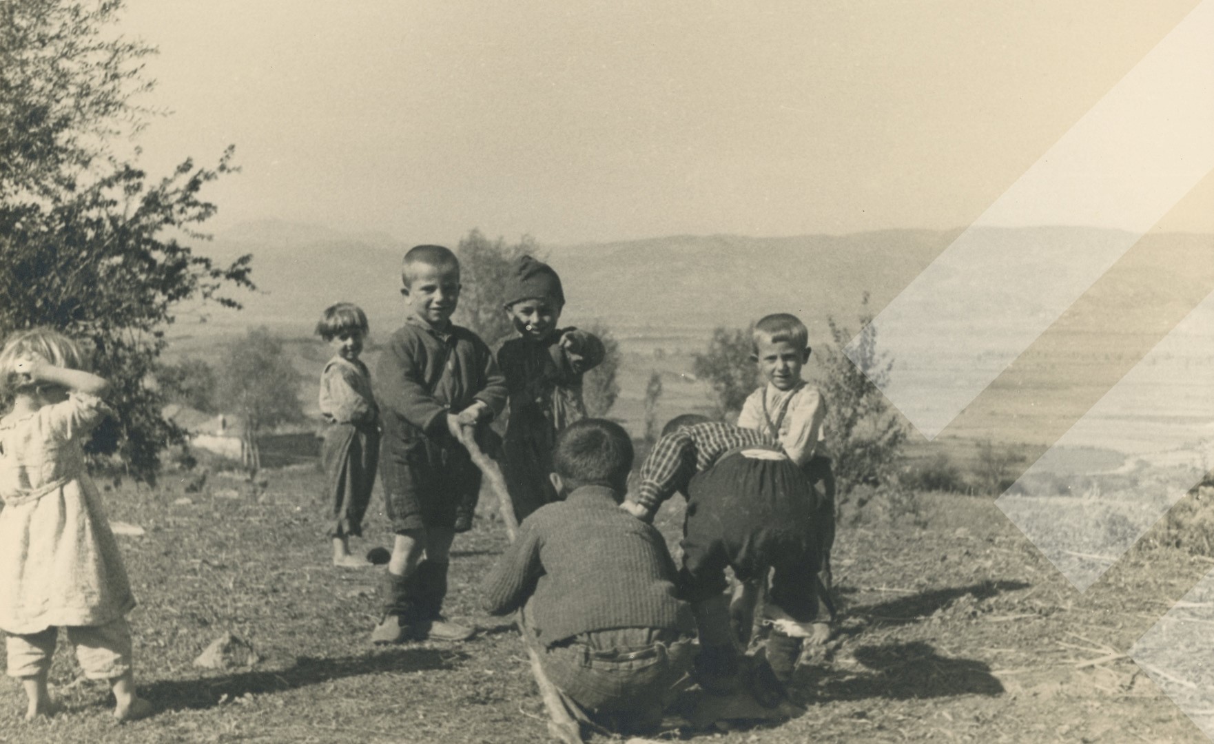 I panjohur, rreth 1940-1942 Fëmijë duke luajtuar, Korçë print në letër, 9 x 14 cm.