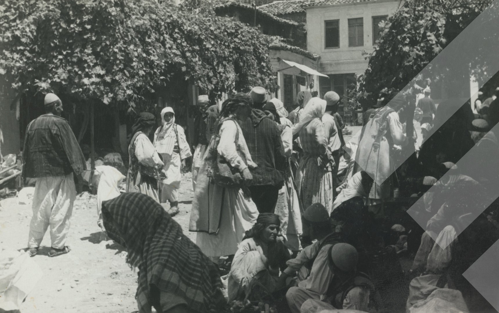 I panjohur rreth 1937-1940 Ditë pazari, Shkodër print në letër, 9 x 14 cm.