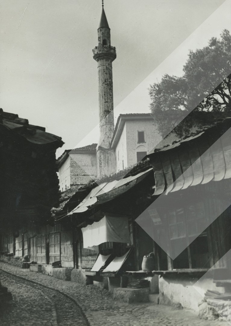 I panjohur, rreth 1940 Një kënd nga pazari i Krujës print në letër, 12 x 17 cm.
