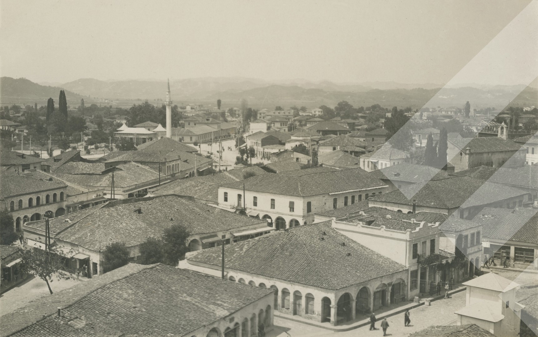 I panjohur, rreth 1930 Pamje e pazarit të vjetër të Tiranës print në letër, 9 x 14 cm.
