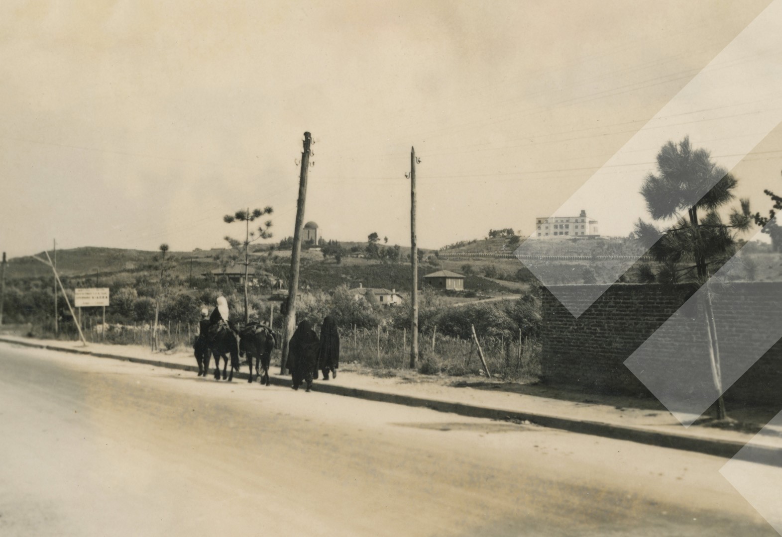 I panjohur, rreth 1942 Pamje e Pallatit Mbretëror dhe mazoleumit të nënës Mbretëreshë print në letër, 6 x 9 cm.