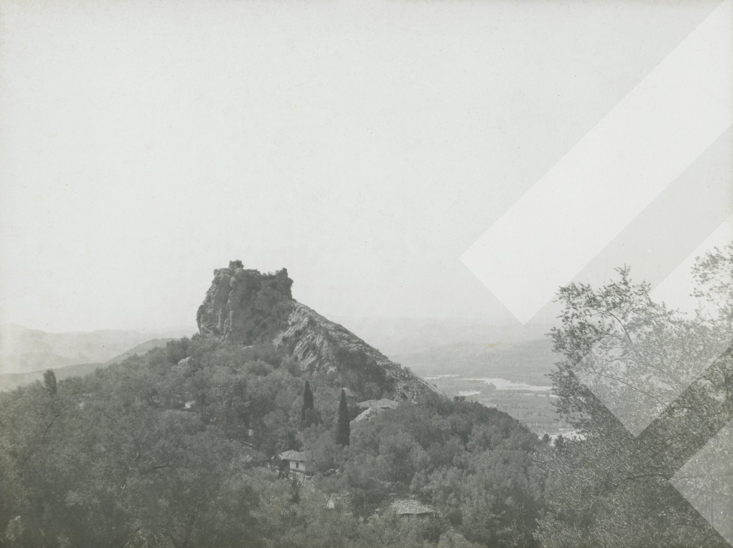 I panjohur, rreth 1930 Pamje e kalasë së Petrelës print në letër, 9 x 12 cm.
