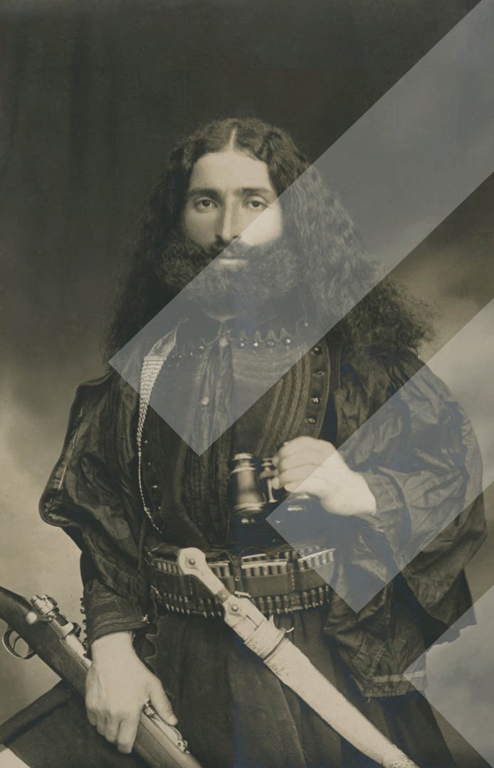 I panjohur, rreth 1908-1910 Luftëtari Bilal Rukia nga Gusmari i Kurveleshit print në letër, 9 x 14 cm.