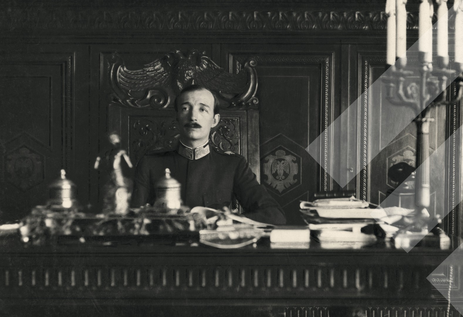 Otello Renzoni, 1930, Mbreti Zog në zyrë, print në letër, 9 x 14 cm.