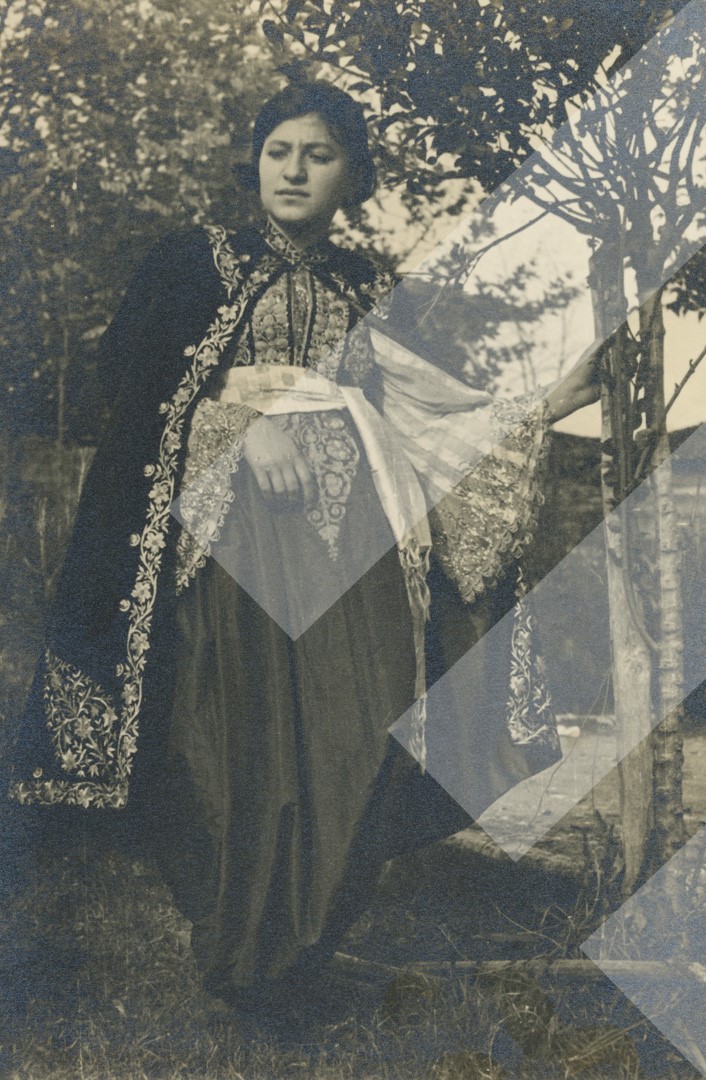 I panjohur, 1937, Vajzë me veshje tradicionale, print në letër, 11 x 17 cm.