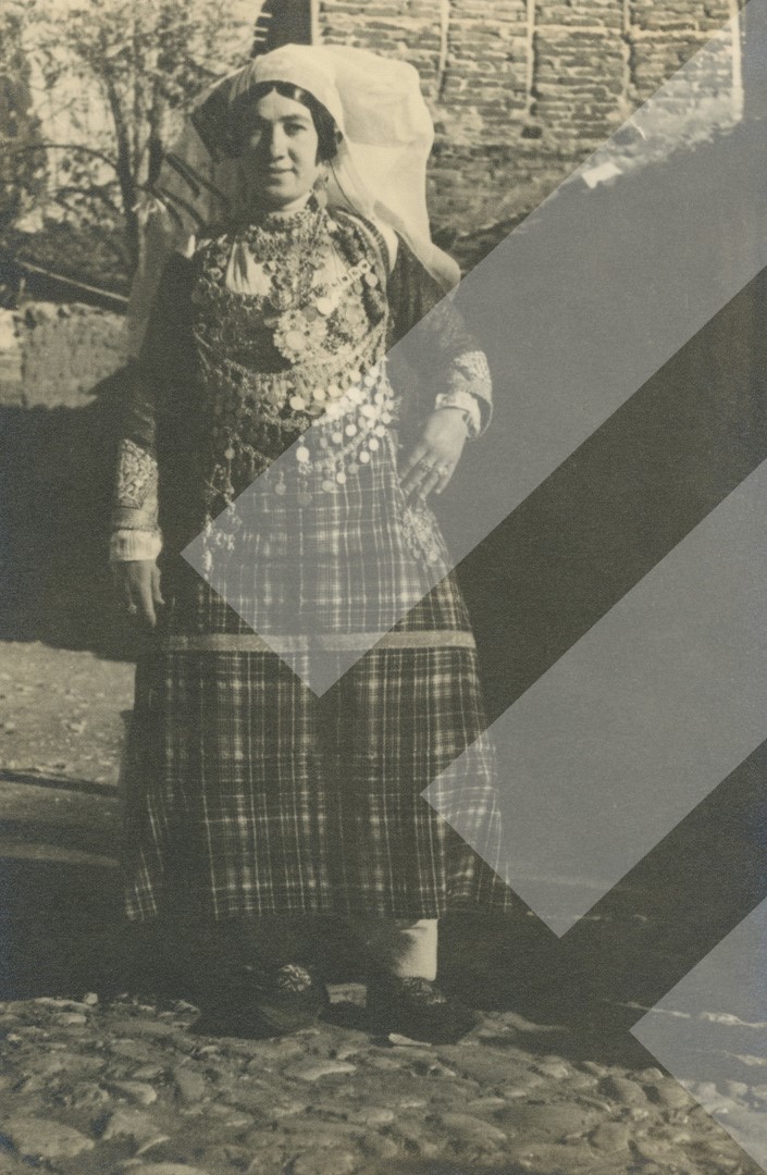 I panjohur, 1937, Grua me veshje tradicionale të Veriut, print në letër, 11 x 17 cm.